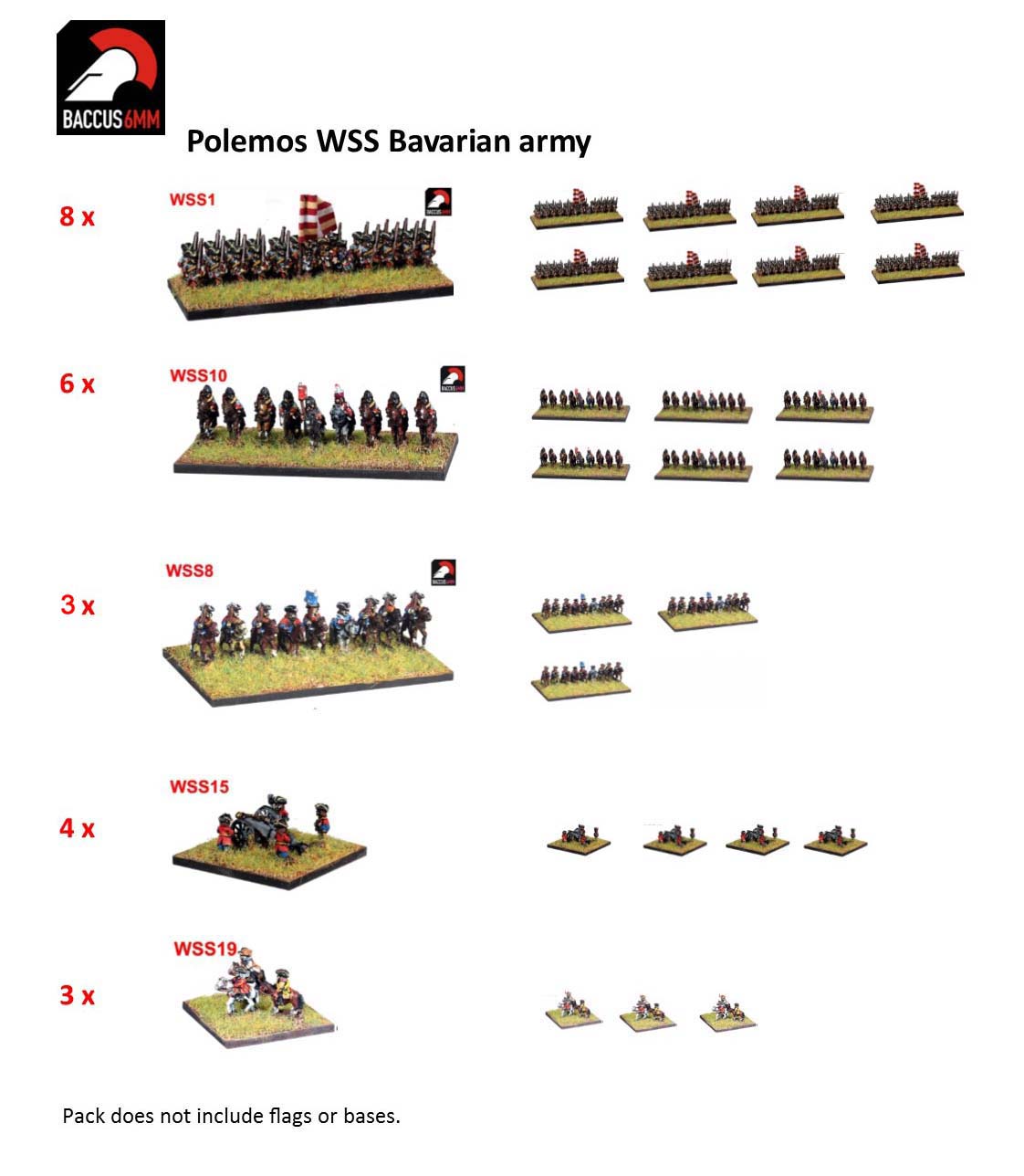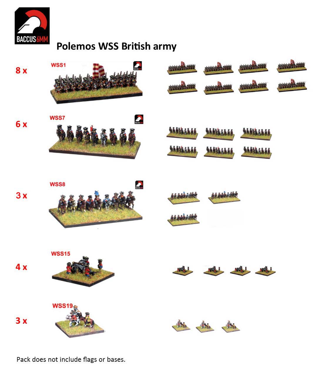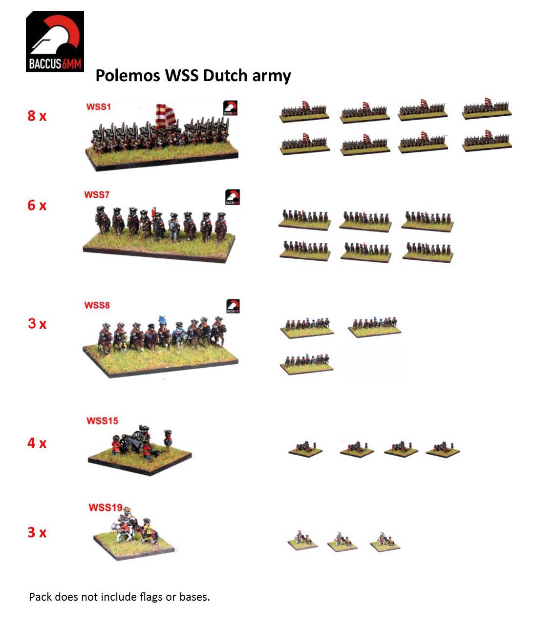 Army packs do not contain bases or flags.