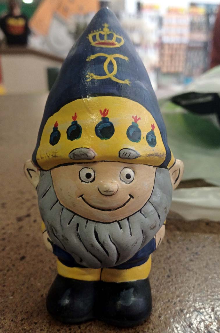 A fun piece. Paint a porcelain gnome in the uniform of your choice. The one in the photo is a Swedish Grenadier of the Great Northern War.