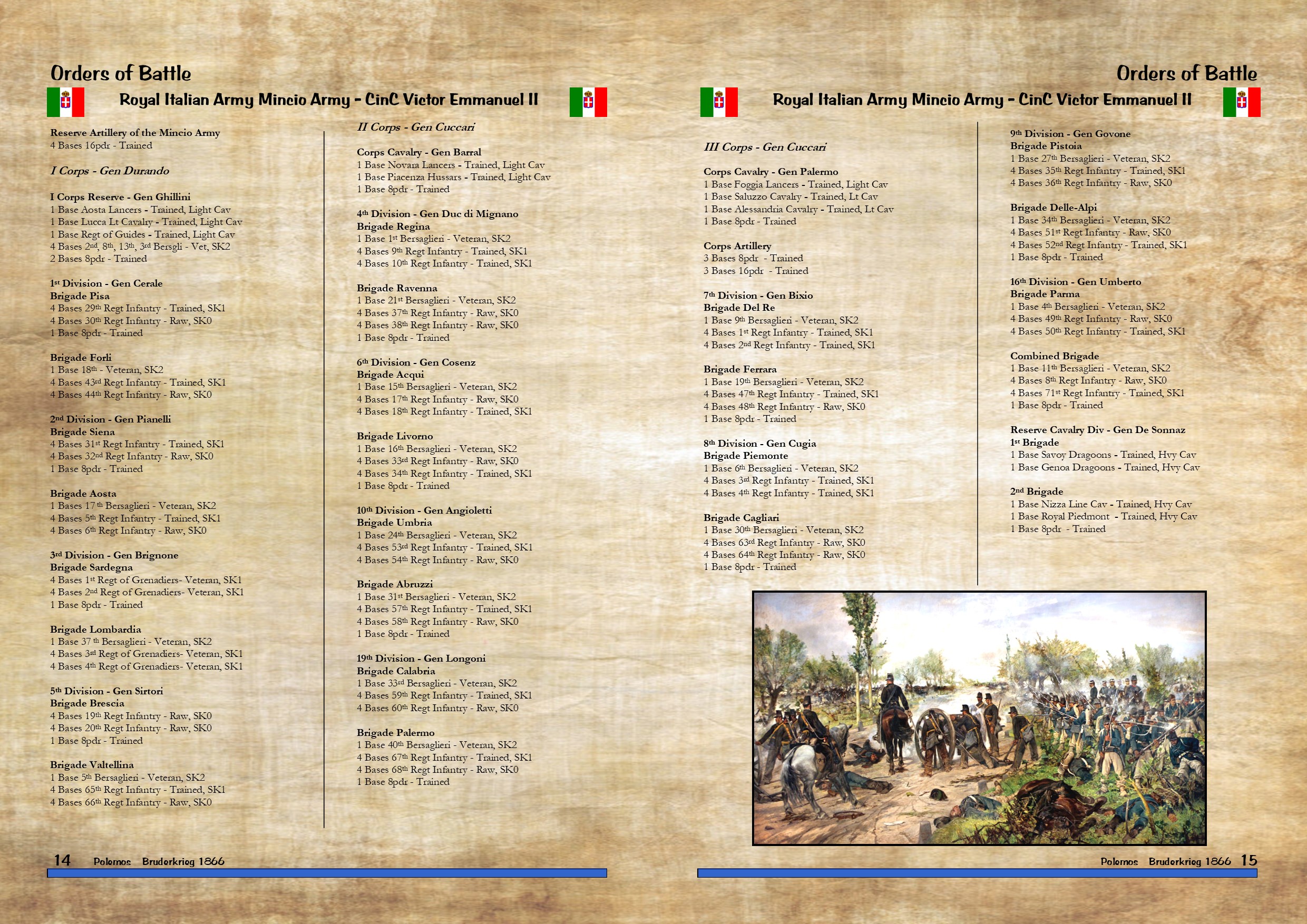 Divided into two sections covering the 1859 and 1866 campaigns respectively, this publication gives rules extensions, orders of battle, army generators and scenarios for both corps and army sized actions.