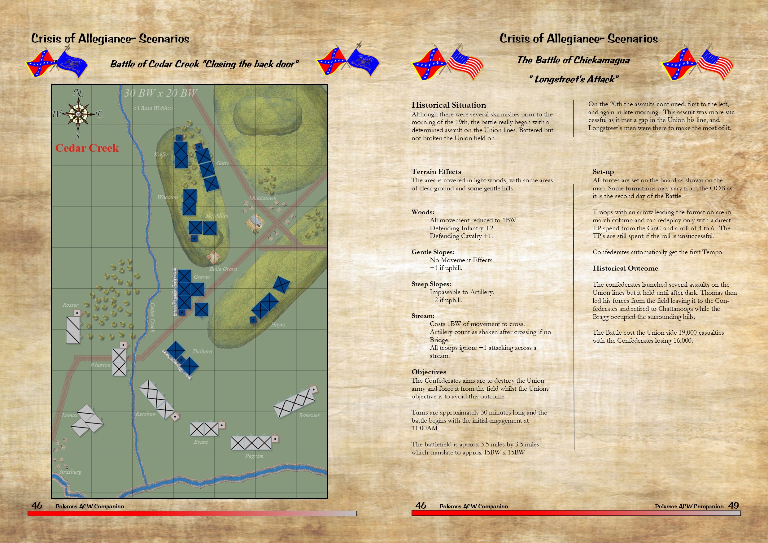![]() Administrator Posts: 988 ACW scenariospeter 21st Nov 2023 02:00:41 I am halfway through the layout for the ACW Companion. Here's a sample of what to expect: