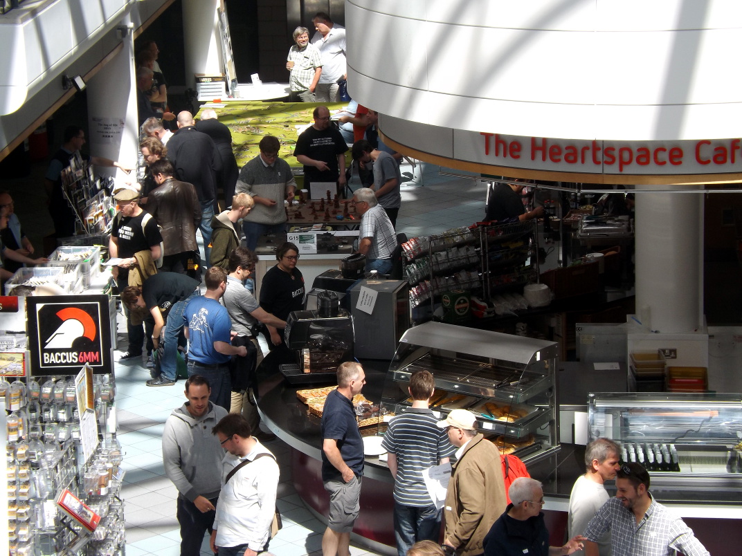 This was our first time in our spectacular new venue and as could have been expected, there were a couple of teething problems, most notably the porters having set up the room on our behalf using a floor plan with no table dimensions, which resulted in a mad scramble by the small but highly mobile organising team to make sure that all the games had the correct sized tables below them to support their efforts.